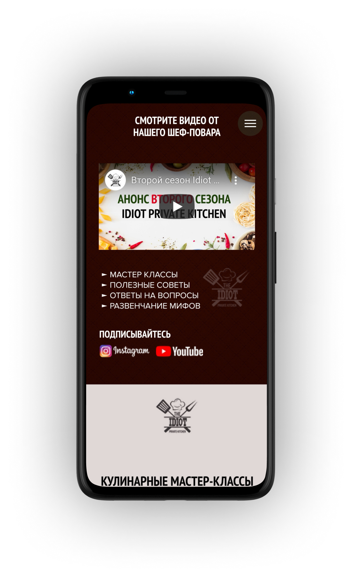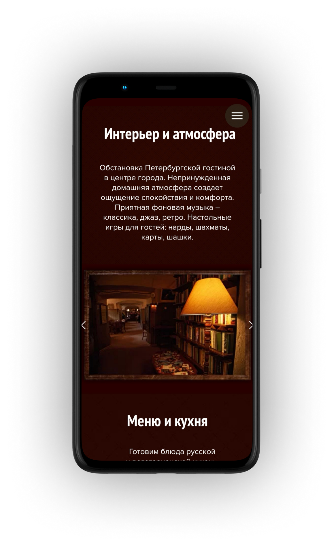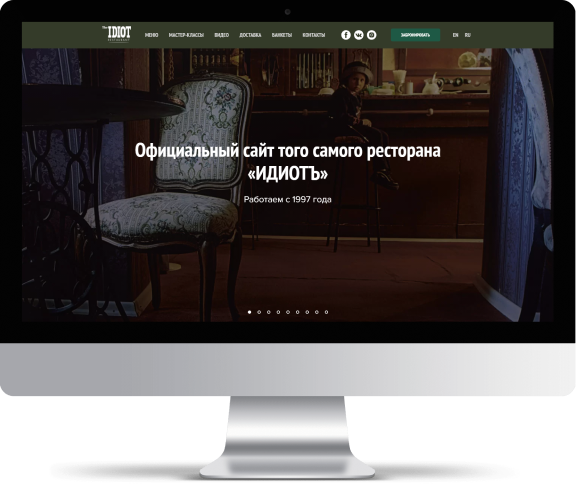 Основой дизайн-решения является интеръер самого ресторана, где основным фоном сайта являются кирпичные стены, винтажные рамки, мебель и др.