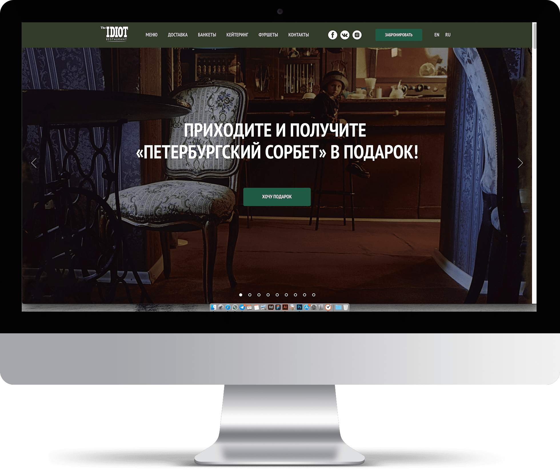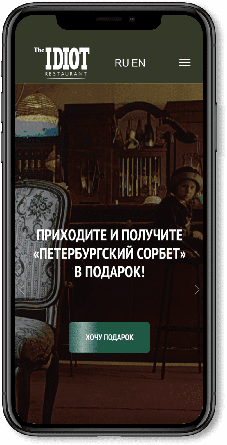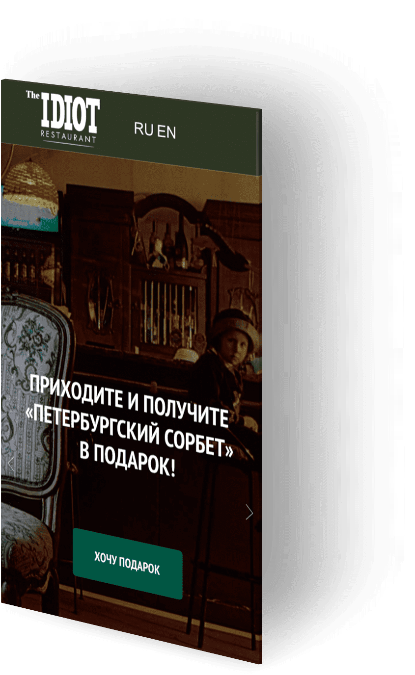 Основой дизайн-решения является интеръер самого ресторана, где основным фоном сайта являются кирпичные стены, винтажные рамки, мебель и др.