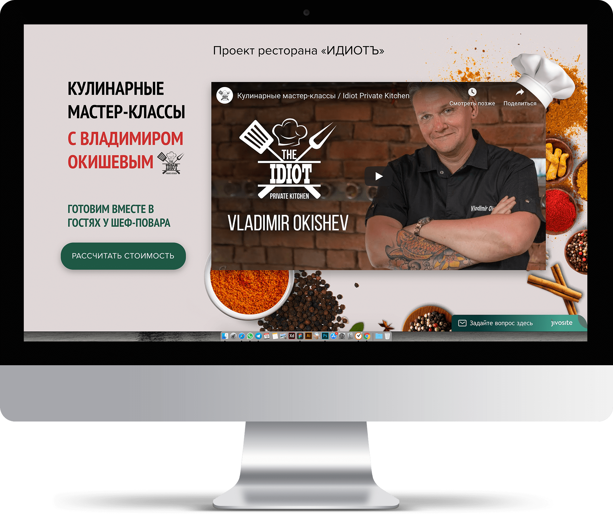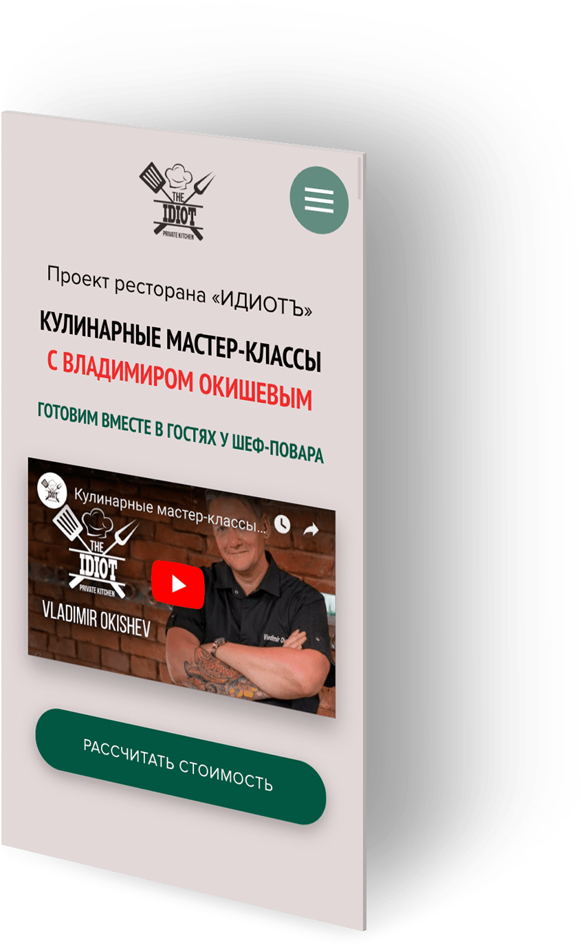В отличии от стилистики сайта ресторана «ИДИОТЪ», в данном проекте был реализован современный минималистичный дизайн, который привлекает к себе особое внимание элементами разной еды.